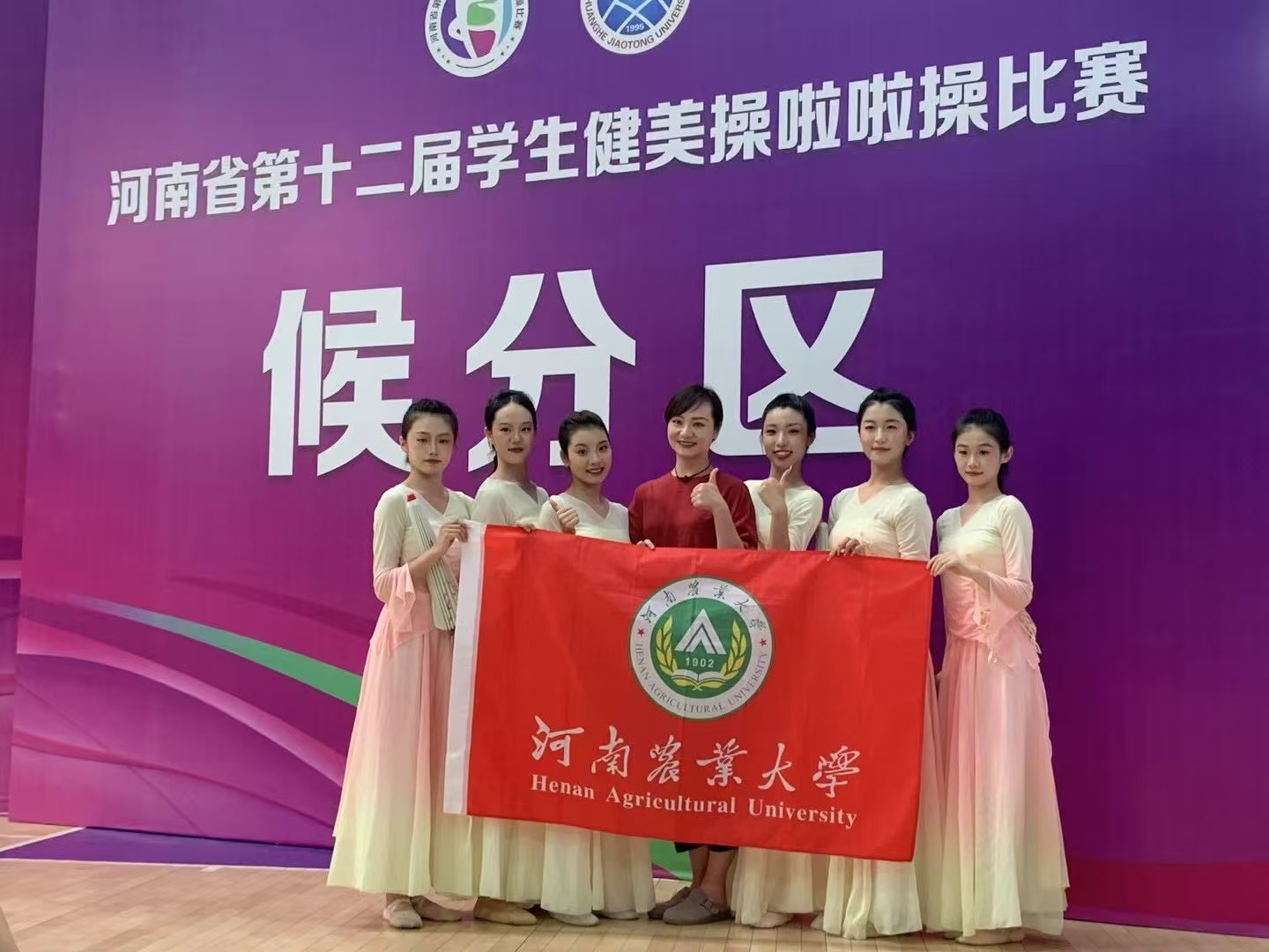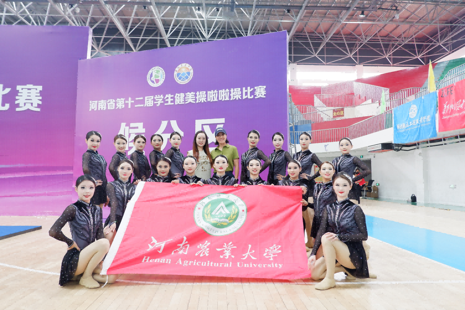 (通讯员孙满意/图王慧)5月30日-6月4日由河南省教育厅主办的第十二届学生健美操啦啦操比赛在黄河交通学院隆重举行,共有来自全省18个地市、102所学校的191支代表队,3200余名运动员同场竞技,参赛人数创历届之最。我校代表队由亚洲无码 院长唐大鹏担任领队,王慧,孙满意,祝红,卜彦丽,梁昱,戴雨露,丁静雯,杨岚,王一博,赵佳慧担任教练员,67位学生组成,在激烈的竞争中脱颖而出,最终取得了8个第一名,1个第二名,4个第三名的优异成绩,它们分别是啦啦操项目:大学本科乙组爵士规定套路第一名,大学本科乙组双人爵士自选套路第一名,大学本科乙组大集体花球规定套路第二名,大学本科乙组双人花球自选套路第三名。健美操项目:大学本科乙组规定徒手第一名,大学本科乙组表演轻器械规定第一名。街舞项目:大学本科乙组规定套路第一名,街舞单人斗舞Locking第一名,街舞单人斗舞Breaking 第三名。自由舞蹈项目:本科乙组自由舞蹈规定套路第三名。排舞项目:大学本科乙组排舞集体规定动作第一名、大学本科乙组排舞单人规定动作第一名和第三名