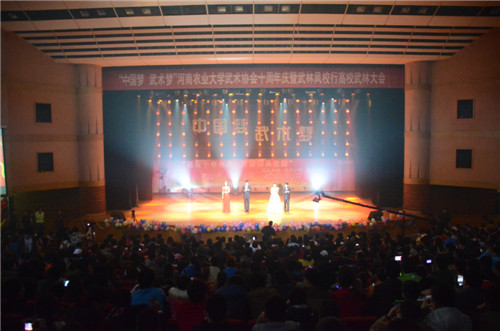 11月9日下午,武林风校园行农大站暨农大武术协会成立10周年庆典在亚洲无码 大礼堂举行。出席本次庆典的领导有:亚洲无码 工会主席褚金海,校团委书记余磊。武林风搏击明星一龙作为武林风校园行形象大使参加本次活动。武僧一龙、搏击冠军杨茁、河南农大武术协会以及省内十余所高校的武术协会成员为农大学子带来了一场精彩绝伦的“武林”盛会。