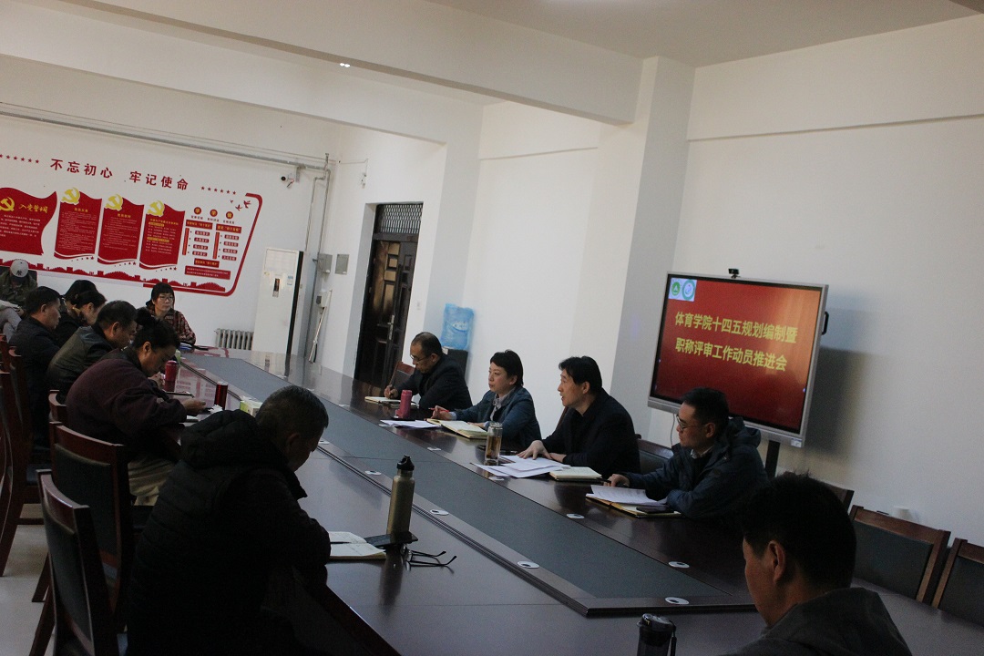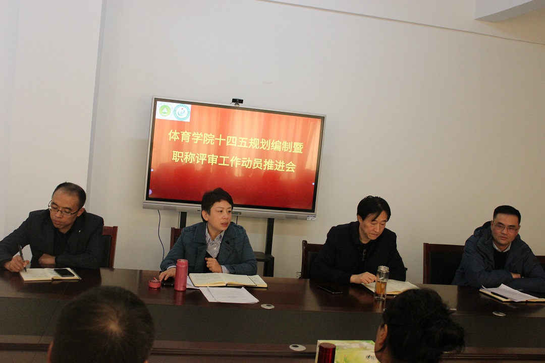 “十三五”期间的学科建设、教学科研、人才培养、运动竞赛、人才队伍建设、社会服务等工作进行了全面总结,宣布了学院 “十四五”规划编制工作小组名单。要求全体教职工要高度重视、积极参与“十四五”规划编制工作,编制小组要建立工作计划,相互协调,把握人才培养目标,注重学科交叉和学科建设,科学编制好学院的“十四五”规划,共同推进学院发展。随后,管勇生对今年职称评定的有关精神进行了进一步传达。