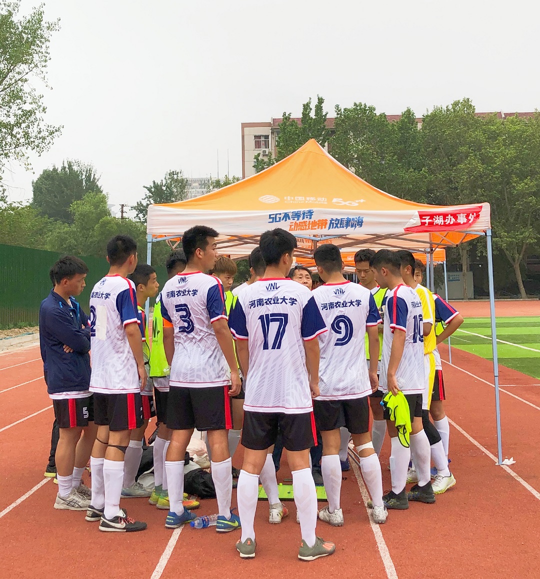 此次比赛体育专业组共17个队,小组赛中,农大体院足球队首场在上半场2:3落后对手的情况下,下半场易边再战,全面爆发接连攻入三球以5:3拿下比赛。最后一场面对实力不逊的黄河科技学院,农大体院足球队依然不屈不挠始终贯彻自己的战术打法不被对手节奏所干扰,以1:1握手言和。最终,农大体院足球队在小组赛中,以1胜2平的不败战绩成功出线,挺进八强。