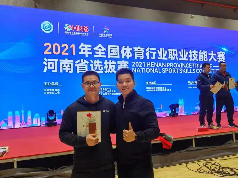 据悉,本次比赛以“岗位技能练兵 服务全民健身”为主题,在本次大赛中获得一等奖的选手可申报“河南省五一劳动奖章”。李高华老师参加的社会体育指导项目比赛,内容包括岗位知识和岗位技能两部分。岗位知识包括运动营养学、特殊人群健身运动、运动计划设计及专项运动知识等,以闭卷机考形式进行。岗位技能包括体能、安全防护技能、教学指导技能等,其中体能主要考察选手肌肉力量、耐力、速度、协调性等,参赛选手需依次完成纵跳摸高、沙袋过杆、1分钟跳绳、1分钟俯卧撑、折返跑、半球蹲起6项测试。安全防护技能主要考察选手运动损伤预防及突发事件急救处理能力,参赛选手需连续完成单人CPR(心肺复苏)、AED操作、创伤止血、包扎与固定操作,锻炼后肌肉静态拉伸示范与说明等3项内容。