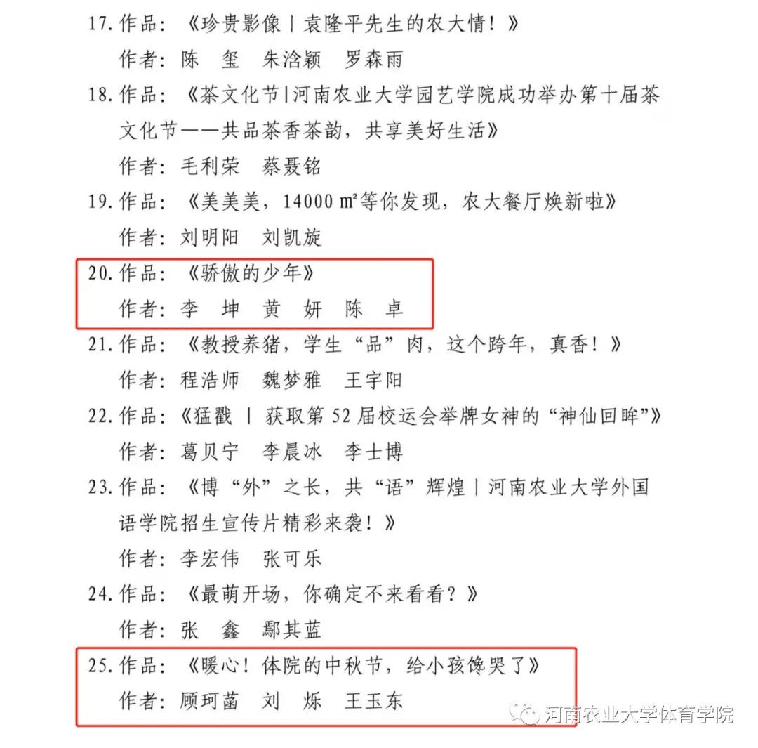 新媒体作品《骄傲的少年》、《暖心!体院的中秋节,给小孩馋哭了》荣获一等奖;作品《满“新”欢喜,遇见你!亚洲无码