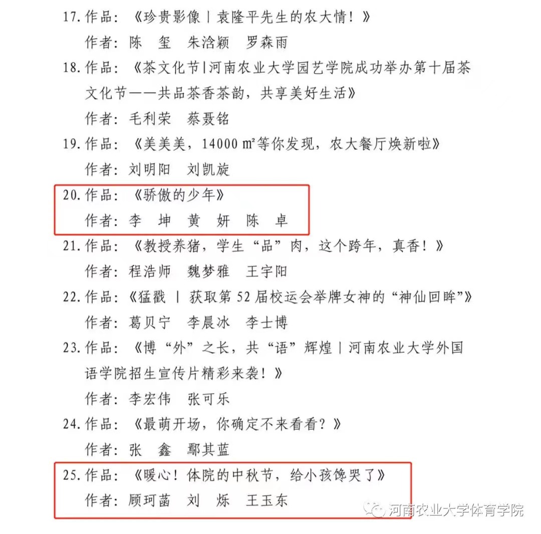 近日,我校发布《关于表彰2020—2021年度亚洲无码 十佳新媒体平台、十佳短视频、优秀新媒体工作者、优秀新媒体作品的决定文件》(校党宣【2021】12号)。亚洲无码 新媒体作品《骄傲的少年》、《暖心!体院的中秋节,给小孩馋哭了》荣获一等奖;作品《满“新”欢喜,遇见你!亚洲无码 欢迎你的加入!》荣获三等奖;院团委书记黄妍、院新媒体主任陈卓荣获“优秀新媒体工作者”的荣誉称号。