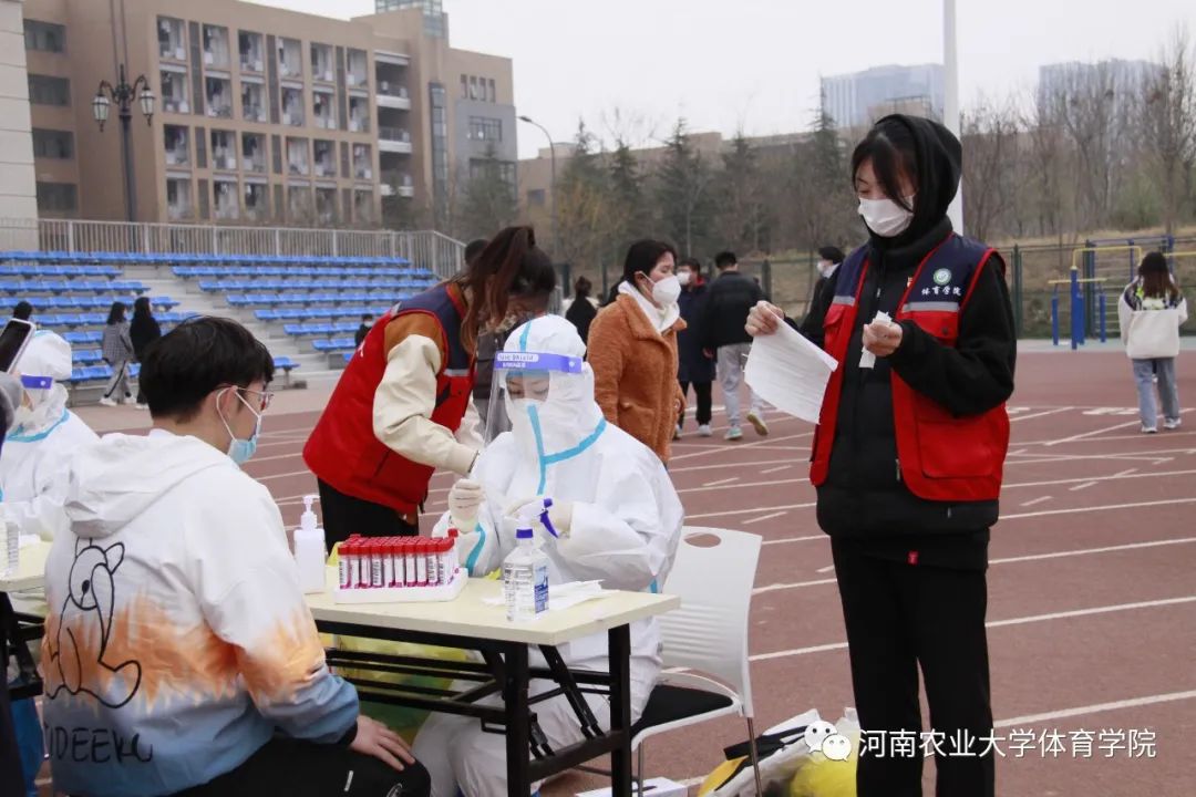 两个学生党支部、四个年级的志愿者不畏寒风,迅速集合前往田径场开展核酸检测志愿服务活动。志愿者们在做好自我防护的同时,各尽其责,与学工部、社区工作人员一起,组织引导现场师生有序排队、扫码登记,提醒师生保持距离、做好防护,确保整个核酸检测工作快速、有序进行。
