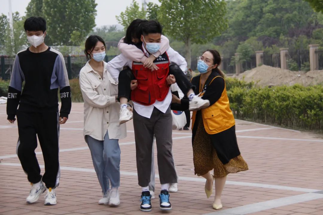 同时,在体育馆外,志愿者们耐心地为同学们指引排队路线。在志愿者们的引导下,师生们保持两米间隔,不扎堆、不聚集、有序流动,保证了核酸检测工作有条不紊地进行。