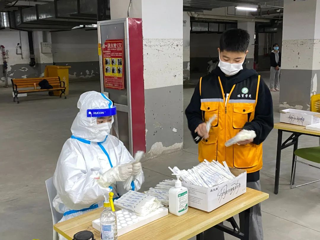 师生得到通知后第一时间出击,迅速组建志愿服务队,助力我校核酸检测抽检顺利进行。