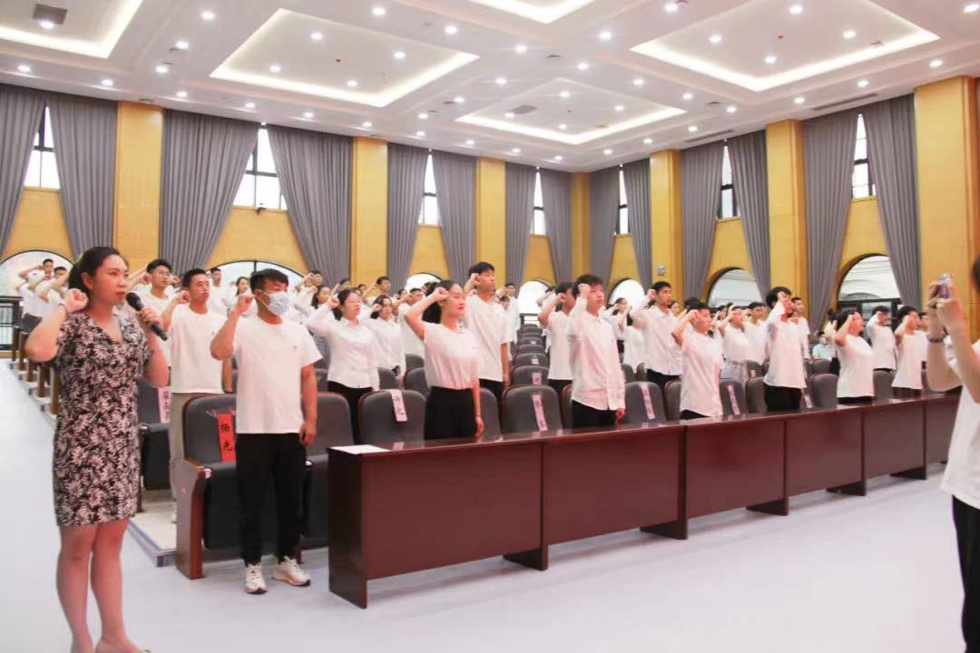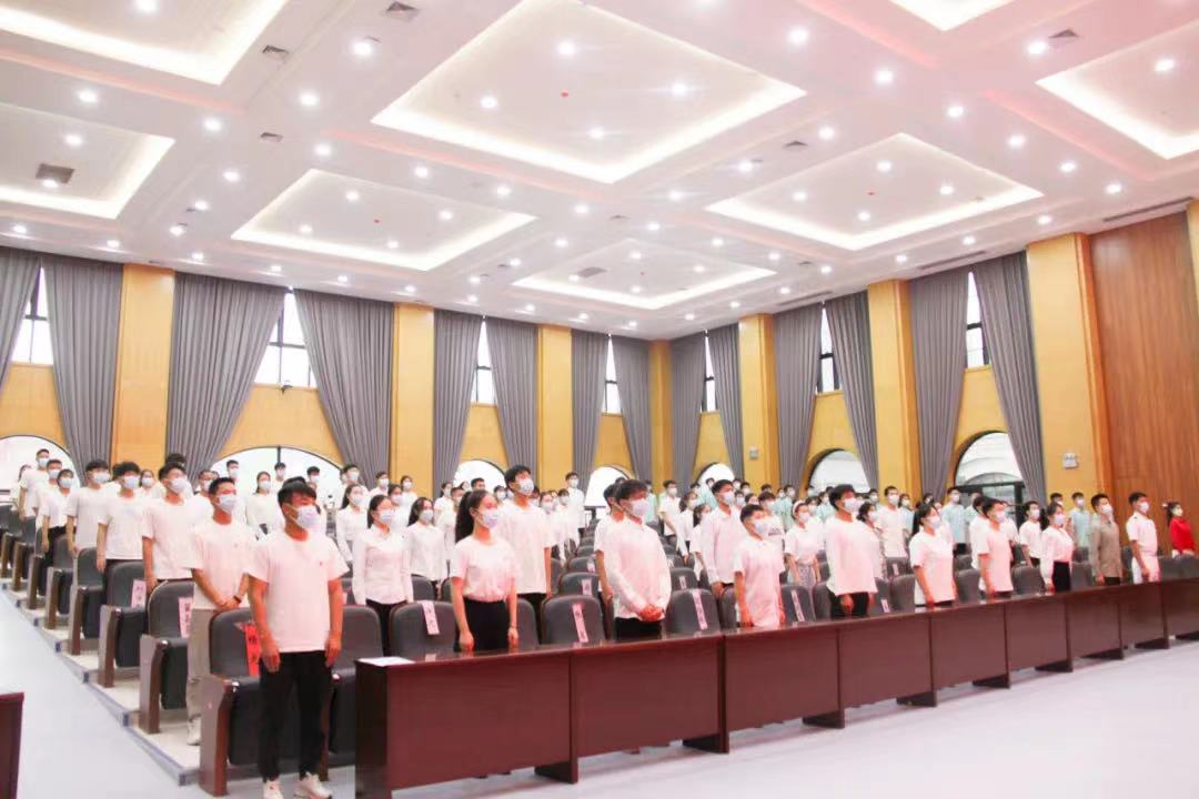 大会在庄严的国际歌中拉开序幕。在学院党委组织员黄妍同志的带领下,88名新党员面向鲜红的党旗,举起右拳许下铮铮誓言。在激昂的宣誓声中,每位党员都接受了一次深刻的思想洗礼,更加深切地感受到了新时代党员的精神追求,进一步强化了对党忠诚、敬业奉献、全心全意为人民服务的使命担当。