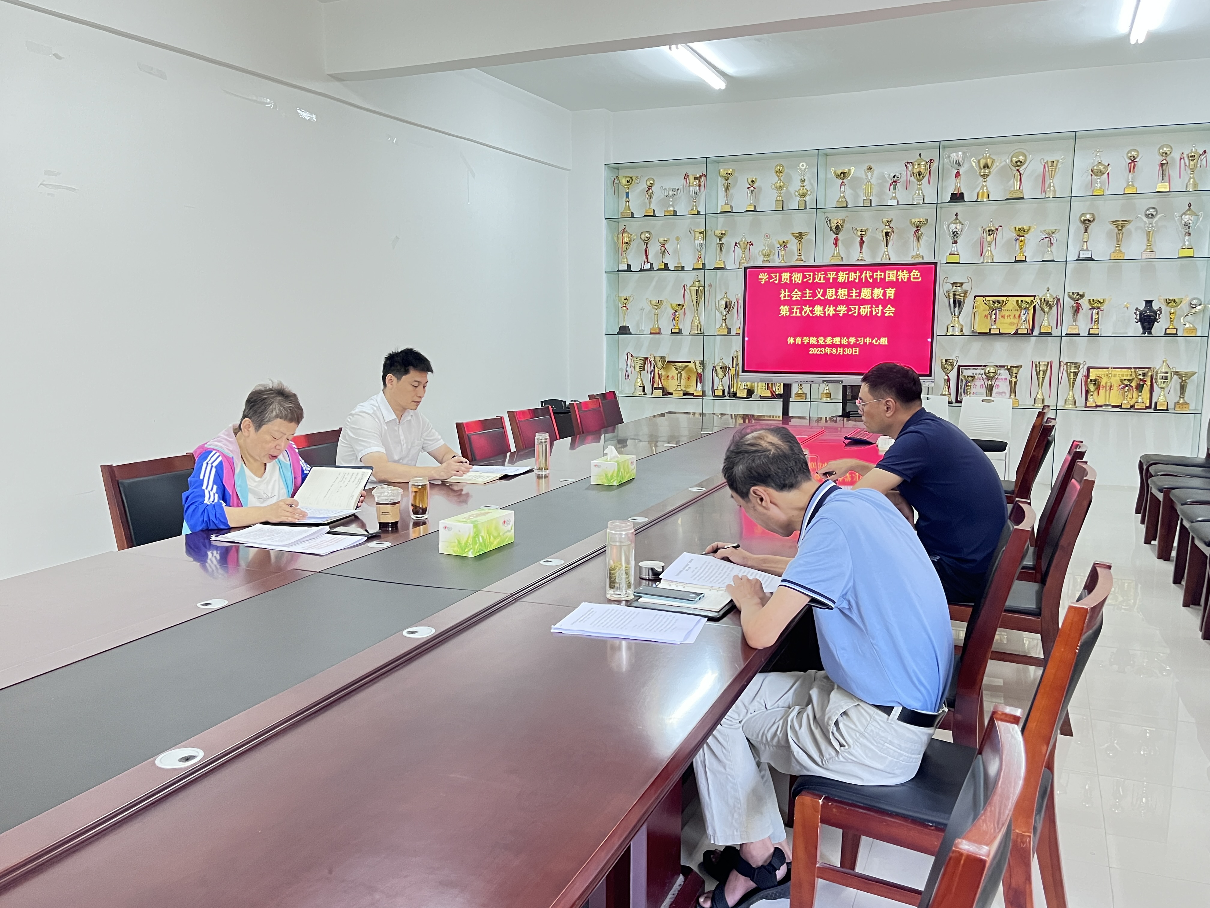 党委理论学习中心组在牡丹楼二楼学院会议室召开学习贯彻习近平新时代中国特色社会主题教育第五次学习研讨会。会议由院党委书记吴旭静主持,在校院班子成员、院党委委员参加会议。