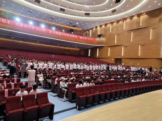于龙子湖校区英林大讲堂大礼堂举办以“书写青春答卷 勇担时代大任”为主题的新党员入党宣誓大会暨2023-2024学年学生工作表彰大会。学院党委书记吴旭静、院长唐大鹏、副院长宛新生、教师代表和全体学生参加了此次大会。