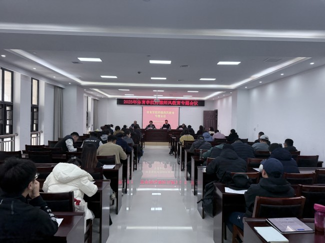 院党委书记吴旭静以"十项准则立根本 三尺讲台践初心"为题作专题报告。她从新时代师德建设的内涵要求切入,结合体育教育教学实际,对《新时代高校教师职业行为十项准则》作了详细解读,并针对学院师德师风建设提出三点要求:一要以德立身,做政治坚定的明白人;二要以德立学,做业务精湛的引路人;三要以德施教,做学生成长的摆渡人。她号召全体教师将师德修养转化为立德树人的实际行动,在体育教学、训练竞赛、社会服务中彰显师德魅力。