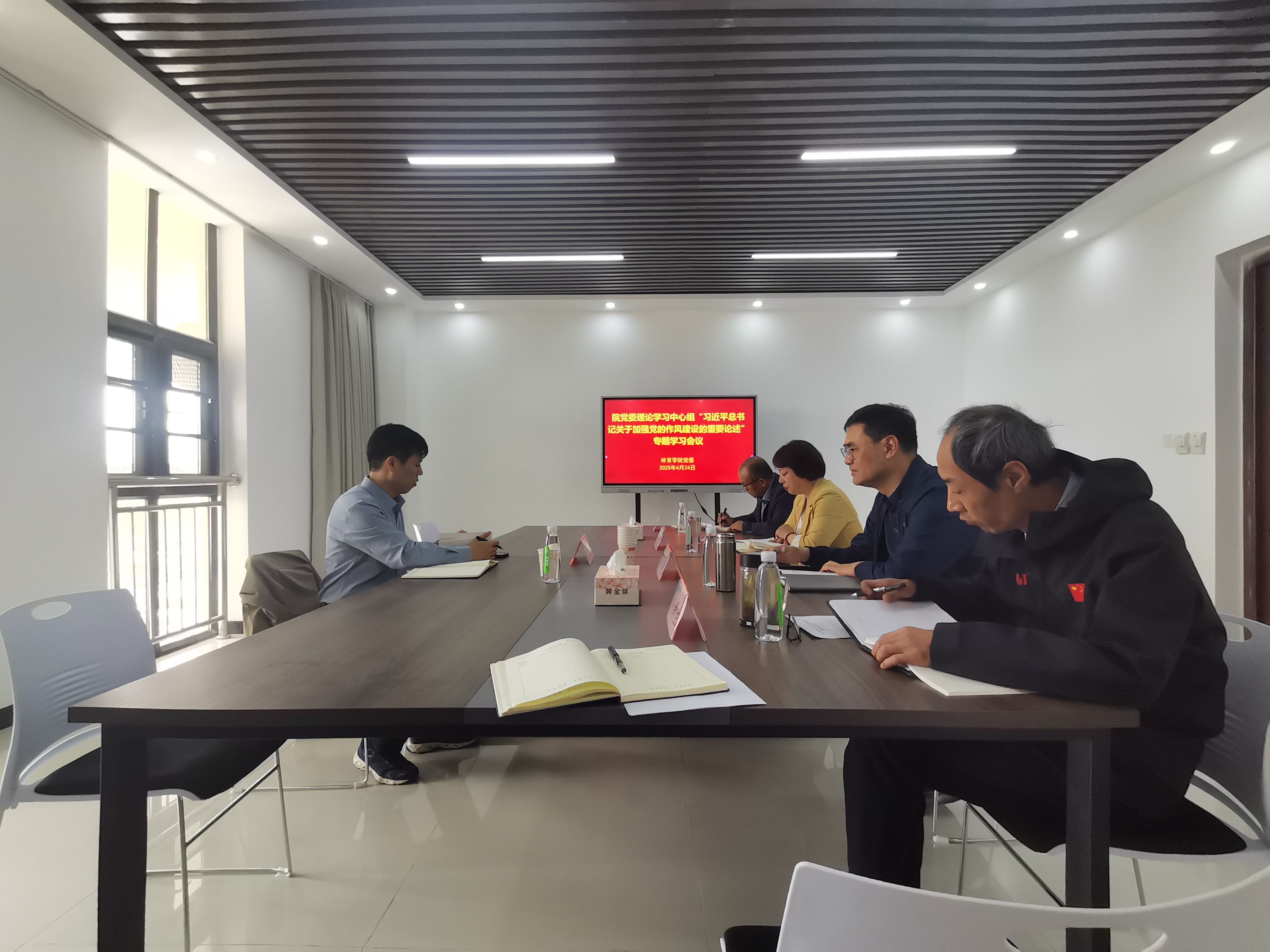 吴旭静首先带领大家深入学习习近平总书记有关持续深化纠治“四风”相关讲话精神。院长唐大鹏领学了习近平总书记有关各级领导干部要带头转变作风,身体力行,以上率下相关讲话精神。