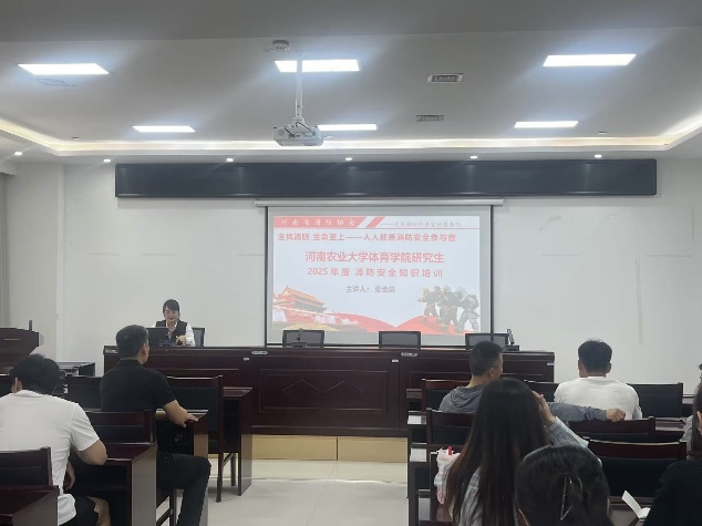 5月13日下午,学院特邀省消防协会义务消防科普宣传服务队的张金霞教员为社会体育系、体育艺术系(包含在校研究生)进行消防安全知识培训。社会体育系培训在学院党建办会议室举行,体育艺术系培训则在学院报告厅开展。