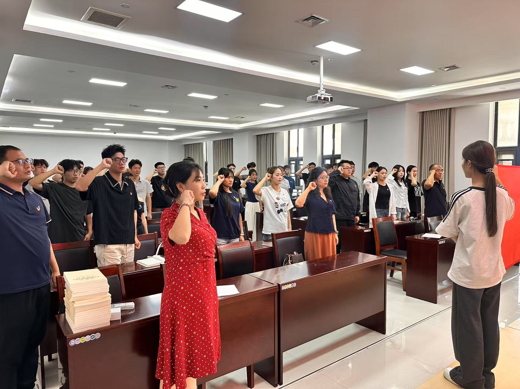 活动首站在英林大讲堂405室举行新党员入党宣誓大会。在庄严肃穆的氛围中,黄妍带领亚洲无码