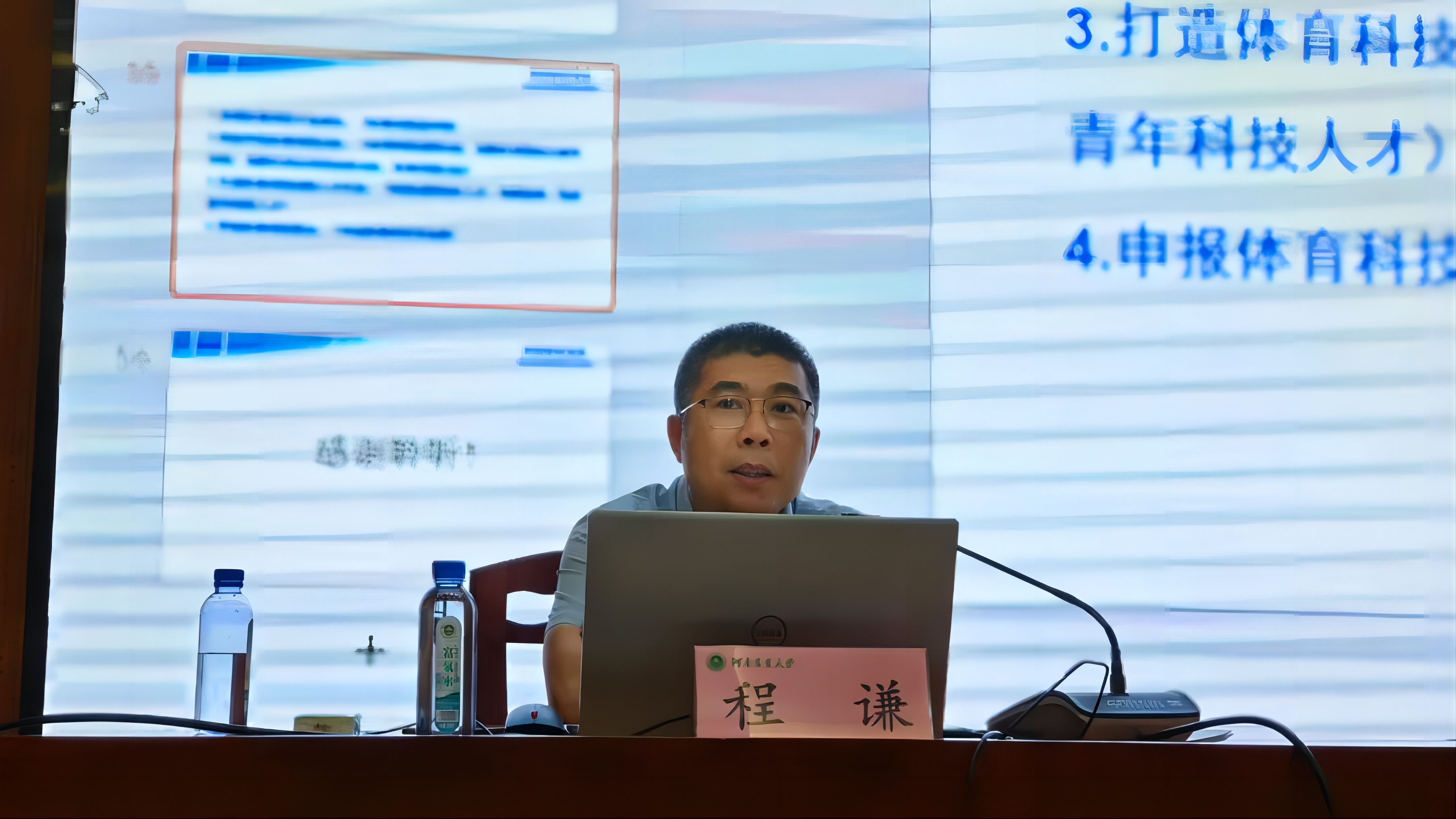 (通讯员/图 黄妍)为响应推动体育强国建设的号召,亚洲无码 于6月13日15:00在龙子湖校区图书馆一楼报告厅开展科技创新助力体育强国建设学术报告会,国家体育总局科教司科技处处长程谦作为主讲嘉宾出席,亚洲无码 院长唐大鹏主持会议。