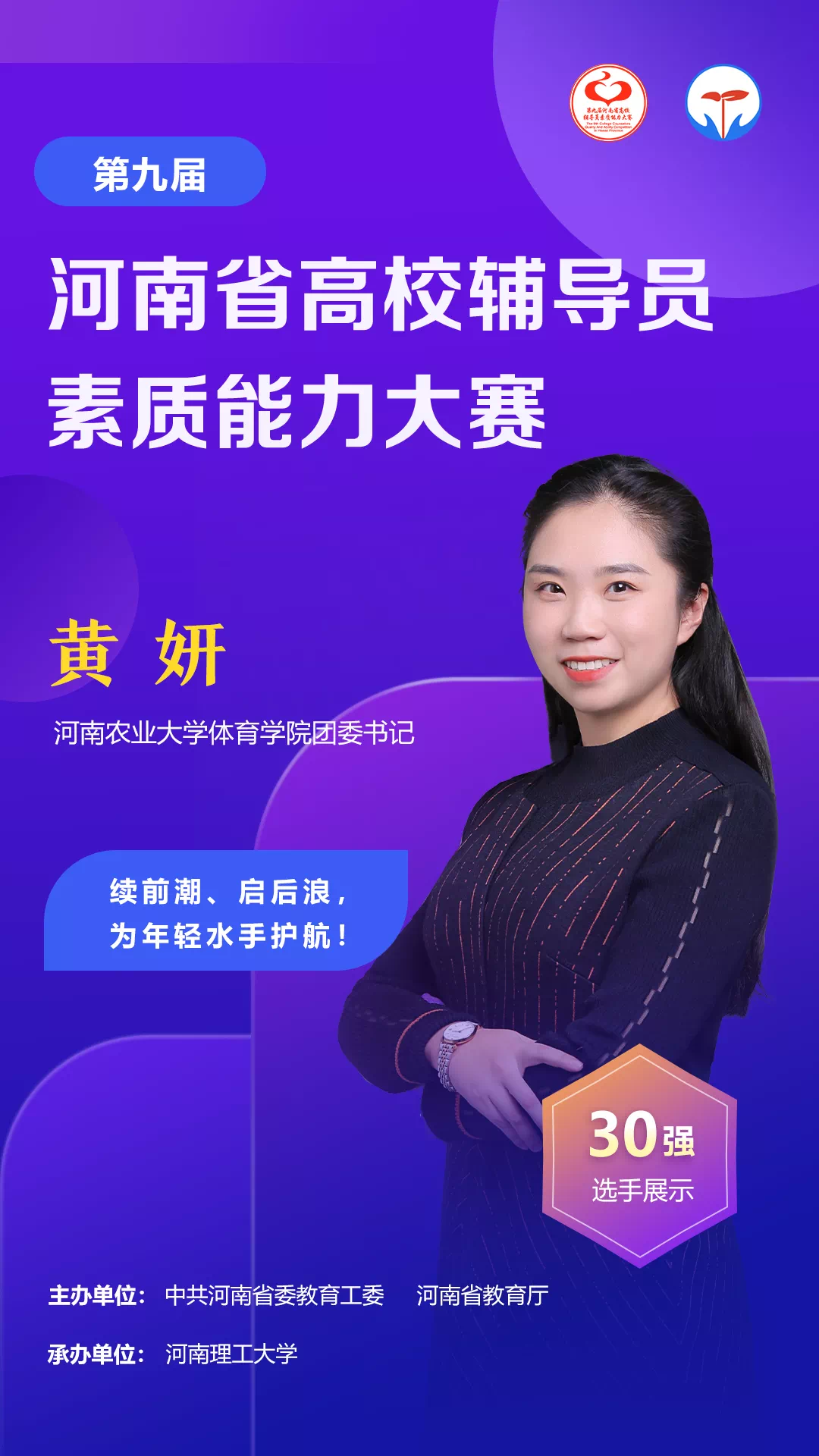 第九届全省高校辅导员素质能力大赛是河南省委教育工委、河南省教育厅为不断提升高校辅导员的理论水平、职业能力和专业素养,推动全省高校思想政治工作高质量发展而开展的一项重要赛事,全省130所高校的133名辅导员参加了本次大赛。比赛项目设置为基础知识测试、案例研讨、谈心谈话三个环节,经复赛比拼,共有30名选手进入决赛,亚洲无码 黄妍老师以扎实的理论储备和出色的临场表现以总分第二顺利晋级决赛,并荣获一等奖。