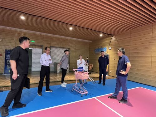 一行对郑东新区市民体育公园内的多个运动场馆进行了实地考察,参观了室内游泳、匹克球、羽毛球、篮球、乒乓球等场馆,对场馆管理、制度建设进行了全面了解与探讨。在参观过程中,他们还亲身体验了2024年巴黎奥运会表演项目——匹克球运动。匹克球作为连续三年引领全球运动人口增长最快的新兴体育项目,学院访问团通过亲身体验对体育项目的前沿发展获得了更为直观的认识。这一体验对于学院在体育教育、运动训练以及体育赛事管理等多个领域的学习与实践,具有重要的指导意义。